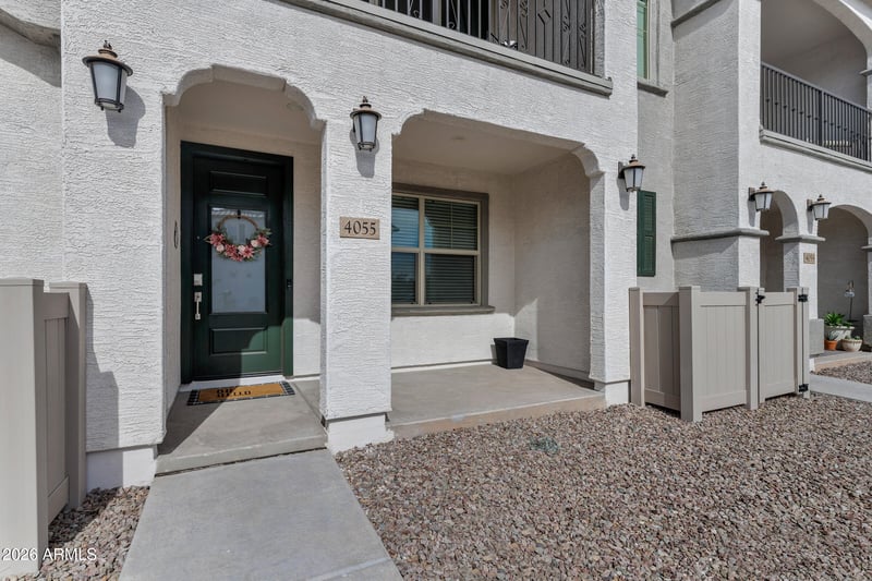 Listing details for 4055 Amoroso Dr, Gilbert, AZ 85296 : Welcome to your new townhouse located in the beautiful community of Warner Meadows! Bright kitchen with white cabinets, granite countertops, stainless steel appliances and a breakfast bar. The living room opens to a balcony with large slider perfect for entertaining and everyday. Wood tile plank floors throughout and carpets in the bedrooms! Two primary bedrooms with en-suite bathroom. Half-bath is located on the main level perfect for your guests. 2 car attached garage has epoxied floors. Water softener. Refrigerator, washer and dryer included. North/South facing. Warner Meadows amenities include multiple parks, walking paths, and a stunning community center with heated play pool, BBQ's, entertaining areas and bathrooms. Enjoy low maintenance living in this move in ready gem!