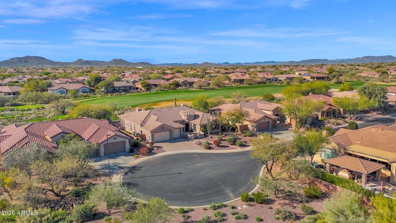 Listing details for 40610 Bradon Ct, Anthem, AZ 85086 : A MUST SEE! STUNNING GOLF COURSE VIEW LOT IN THE COVETED ANTHEM COUNTRY CLUB, close to Ironwood clubhouse. Rare Brentwood model w/ a 216sf casita & full bath. Nestled in a quite cul-de-sac, this luxurious TURN KEY home offers breathtaking mountain views from the lg entry courtyard and gorgeous sunsets from your resort style backyard. This contemporary gem is a designer showcase, elegantly remodeled in 2025 w/ custom cabinetry, LED lighting in the kitchen, new granite counter, bev refrig, remodeled baths, fresh paint throughout, 18'' travertine floors, 12' ceilings, floor to ceiling drapes, new windows, Trane HVAC units, lg master suite w/french door to your backyard oasis that incl. extensive stone w/raised negative-edge pool, spa,, solar heating, BBQ island & fireplace.. OPEN 1/31