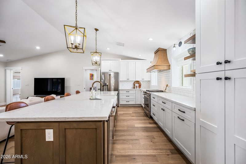 Listing details for 4110 Catalina Dr, Phoenix, AZ 85018 : Welcome to 4110 E Catalina Dr--a stunning, like-new single-level home in the heart of Arcadia / Camelback East (85018). Rebuilt from the ground up (2019-2020) with elevated craftsmanship and designer finishes, this 4 bedroom, 3 bathroom residence offers an ideal split floor plan, vaulted great-room ceilings, and European oak wood flooring for a bright, airy, high-end feel. The chef's kitchen is truly ''TV-show wow'' featuring Café appliances, two-tone custom cabinetry, a showpiece custom hood, open shelving, quartz countertops, subway tile backsplash, and a generous kitchen island--perfect for entertaining and everyday living. Slide open the dual sliding glass doors for seamless indoor-outdoor living. The expansive patio showcases herringbone brick tile, while the backyard delivers rar Arcadia charm with traditional flood irrigation + modern sprinklers, plus high-producing lemon and lime trees for your next cocktail or recipe. Additional highlights include dual-pane windows, water softener, high-end epoxy garage flooring, 2-car garage, north/south exposure, no HOA, and a neighborhood that radiates pride of ownership. Zoned for sought-after schools including Tavan Elementary, Ingleside Middle, and Arcadia High (Scottsdale Unified). Lifestyle wins: minutes to Arcadia's favorite spots and convenient to Biltmore, Arizona Country Club, Old Town Scottsdale, and more--plus quick access to hiking around Camelback Mountain.