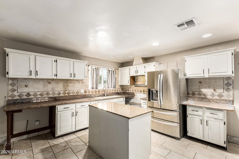 Listing details for 4116 64th Dr, Phoenix, AZ 85033 : This single-level 3-bedroom, 1-bath home offers approximately 2,100 square feet of space and is full of potential for the right buyer. Being sold as-is, this property is ideal for investors, renovators, or anyone looking to customize a home to their own style. The kitchen features granite countertops, ample cabinetry, and an existing refrigerator. With the right updates, this kitchen could truly shine as the heart of the home. Step outside to enjoy the oversized covered patio, offering excellent potential for outdoor entertaining, relaxing. This home needs work but offers great square footage and is a solid opportunity to add value and make it your own.