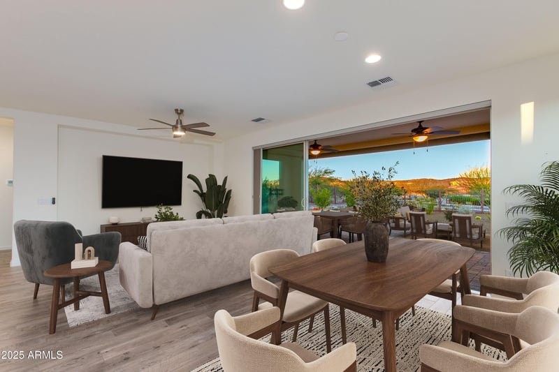 Listing details for 4125 Cactus Blossom Rd, Wickenburg, AZ 85390 : Exceptional Value with Elevated Indoor-Outdoor Living. The Acacia floor plan, built by Shea Homes, features a 15-ft multi-slide wall of glass in the Great Room leading to expansive covered patio with paved extended entertaining space. Large, fully fenced backyard offers endless potential to create a luxury retreat showcasing unforgettable sunrise & sunset colors over desert mountains. Steps from Li'l Wick, our 9-hole par-3 short course, & the Watering Hole full-service outdoor restaurant & bar. Interior upgrades include designer flooring, Lite Mocha cabinetry, granite kitchen counter tops, built-in GE appliances, upgraded ceiling fans, window coverings & shades, soft water system & extended 4' garage. Beautiful exterior palette with Belgard pavers & enhanced landscape package. Lux Value!