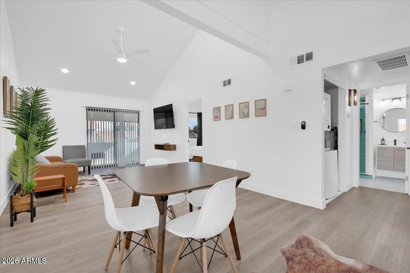Listing details for 413 Linda Ln #D, Gilbert, AZ 85234 : Investors--this is the turnkey STR you've been waiting for. Fully furnished and cash-flowing, this townhouse sits in one of downtown Gilbert's few HOAs that allow short-term rentals. The bright great room features vaulted ceilings and natural light, flowing into an updated kitchen with modern cabinetry, stainless steel appliances, and a cozy screened-in balcony. The spacious primary suite includes a private bath, and the second bedroom is perfect for guests or a home office. All just steps from Gilbert's top dining, shopping, and entertainment.