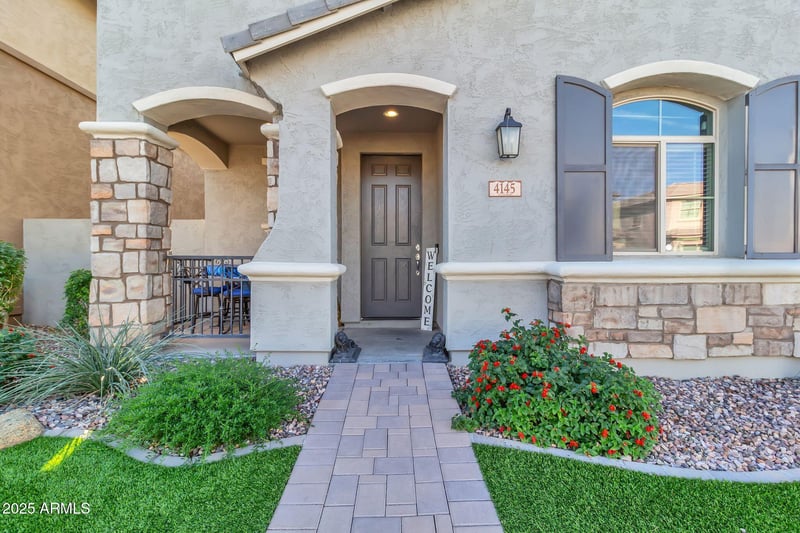 Listing details for 4145 Bethena St, Gilbert, AZ 85295 : Why buy new and pay extra for landscaping, window coverings, etc when you can own this like-new, well priced home and receive $10,000 for a rate buy down (with the right offer) in the newer and sought after Cooley Station neighborhood? Situated on a north/south lot on a quiet, tree lined interior street, the area is surrounded by fabulous urban amenities. Upgraded white cabinets, granite, stainless steel appliances with gas cooking, and designer lighting, complimented by gorgeous wood look tile providing an essence of elegance. A downstairs bedroom with nearby full bath offers versatility, as does the upstairs loft. Additional upstairs features include a laundry room, with cabinets and sink, and four more bedrooms with a nice sized ensuite primary with walk-in closet and updated walk-in shower. The patio and yard come complete with shade sail, extended pavers, artificial turf and water feature providing space for relaxing or playing. And when you want to get out of the house, nearby parks, playgrounds, aquatics center, basketball court, bocce and corn hole bring loads of opportunity for enjoying the place you call home. Additional community amenities include front yard maintenance provided by the HOA. Nearby access to valley freeways, ASU Polytechnic campus, Gateway Airport and an abundance of retail, dining and entertainment options within a mile of the community. Additional San Tan Village amenities within 3 miles. You will love the ease of maintenance in a newer home with a less than four year old roof, A/C, and tankless water heater. This home has it all.