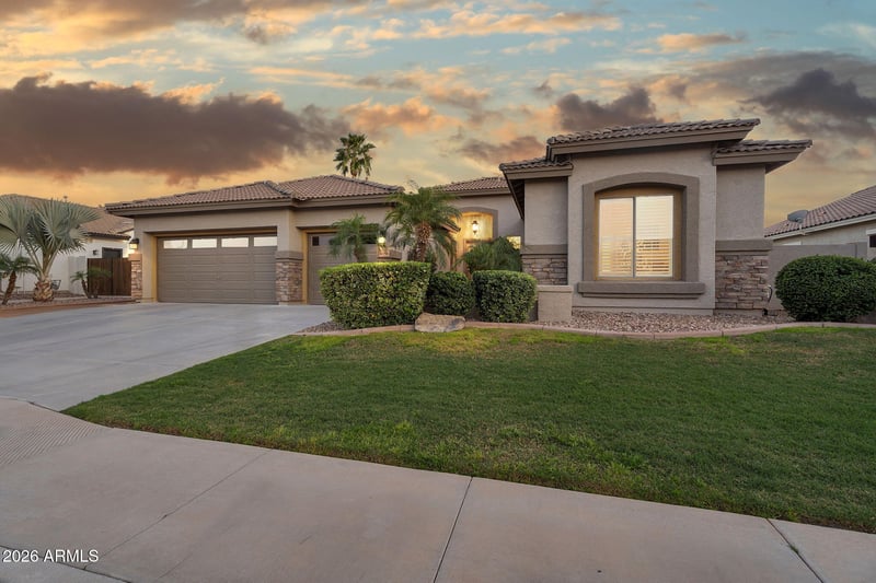 Listing details for 4155 Dubois Ave, Gilbert, AZ 85298 : Rare opportunity in Seville Golf & Country Club featuring the highly sought-after Pabello floorplan on an oversized north/south-facing lot just steps from the clubhouse, golf course, and community park.This 4-bedroom, 3-bath home offers a flexible split layout with two suites, ideal for multigenerational living or extended guests. The primary suite includes direct access to the backyard and a spacious bath with built-in closet organization. A versatile bonus room adds additional living or office space. The kitchen is well-appointed with 42' hickory cabinetry, granite countertops, stainless LG appliances including a double oven with gas cooktop, center island, and breakfast bar. It opens to the great room and formal dining area, creating an easy flow for everyday living and entertaining. The backyard is a private retreat thoughtfully curated for Arizona living. A shimmering PebbleTec pool, complemented by a built-in BBQ island, intimate firepit lounge, extended covered patio, integrated misters and ceiling fans for year-round comfort, and mature citrus trees that frame the setting with lush charm. RV gate access and a pristine three-car garage with epoxy flooring offer seamless function without sacrificing style.