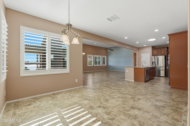 Listing details for 41709 Harvest Moon Dr, Maricopa, AZ 85138 : Welcome to resort-style living in this beautiful waterfront home located the Award Winning 55+ resort of Province. Beautiful curb appeal and a welcoming entry set the stage for something truly special. The moment you step inside, your eyes are instantly drawn straight through the home to a breathtaking water view—an unforgettable first impression that creates a sense of peace and luxury from the very start. This 2-bedroom + den residence offers an open-concept layout designed for comfort, flexibility, and effortless entertaining. The living spaces flow seamlessly into the heart of the home—an inviting kitchen perfectly connected to the dining and living areas, making gatherings feel natural and easy. The kitchen includes 42' staggered cabinets w/crown molding, pull-out drawers, beautiful granite countertops w/tile backsplash and SS appliances including a gas range. Shutters throughout. The primary bathroom has separate dual vanities giving each their own space. The 2nd bedroom is very spacious as well. The den provides ideal versatility for a home office or guest space. There is a 4" extended 2 car garage with epoxy floors and also a golf cart garage. The true showstopper is the backyard. Step outside and take in expansive lake views in a serene waterfront setting, enhanced by an extended paved patio and two pergolas areas perfect for morning coffee, sunset dinners, or entertaining family and friends. With the shimmering water as your daily backdrop, this home offers the kind of lifestyle most people dream about. A rare waterfront opportunity combining curb appeal, comfort, and unforgettable views. This is Arizona 55+ living at its finest. Come home to Province!