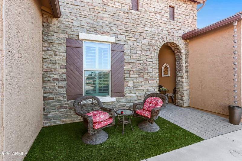 Listing details for 41725 Springtime Rd, Maricopa, AZ 85138 : Exquisitely upgraded single-story home in the prestigious 55+ gated community of Province, featuring 3 beds + den, 3 baths, and a rare 3-car garage. Popular Simone floor plan with open-concept design, tray ceilings, tile plank flooring, and plantation shutters throughout. Gourmet kitchen with granite countertops, stacked cabinetry, gas cooktop, oversized island, butler's kitchen, and walk-in pantry. Spacious primary suite with spa-like bath, dual sinks, soaking tub, and walk-in shower. Enjoy a private south-facing resort-style backyard with extended covered patio, travertine tile, heated POOL, and SPA.