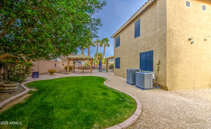 Listing details for 42 163rd Ln, Goodyear, AZ 85338 : Discover luxury living and exceptional value in this move-in-ready home tucked into a quiet cul-de-sac with quick access to the 303 and I-10, plus major energy savings with over 40 owned solar panels. The oversized backyard is built for entertaining with a sparkling pool, hot tub, built-in grill, and custom gazebo, A covered patio with a misting system creates the perfect year-round outdoor lounge. Inside, enjoy brand-new carpet and flooring, 4-inch adjustable wood shutters throughout, and a chef's kitchen with granite countertops, tile backsplash, large island, stainless appliances, and upgraded cabinetry. Formal living and dining rooms, a spacious loft, and generous bedrooms offer flexibility. Upgraded AC plus a mini-split in the primary suite ensure comfort. close to parks and schools.