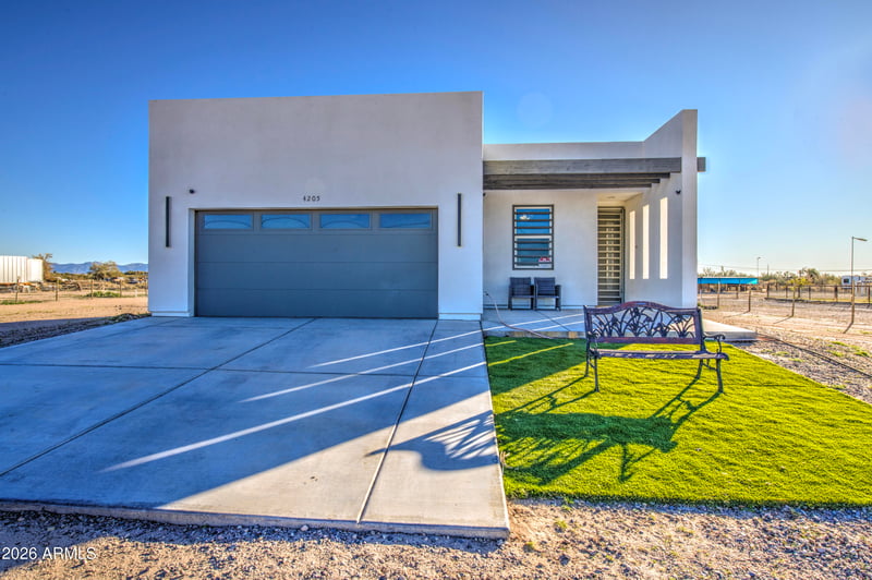 Listing details for 4205 349th Ave, Tonopah, AZ 85354 : Beautiful home for you built in 2021 and sitting on a 1.175 acre property. You'll have a clean slate to landscape however you can imagine. There are contemporary touches all over. To start there is wood-like tile flooring throughout and modern window coverings. Both the kitchen and bathrooms have quartz countertops. The kitchen also has contemporary cabinets with a lot of storage space, stainless steel appliances, and a breakfast bar. Huge master bedroom suite and large walk in closet. The over 1 acre lot gives you privacy and room for all your toys or pets. Hurry and come take a look. You won't be disappointed.