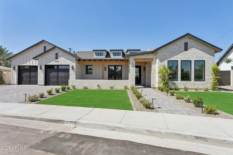 Listing details for 4206 Whitton Ave, Phoenix, AZ 85018 : With its beautiful blend of painted brick, clean architectural lines, and modern farmhouse charm, this exceptional new construction home makes an immediate impression in the heart of Arcadia Osborn. Inside, the home unfolds with a thoughtful, highly livable floorplan designed for both everyday comfort and elevated entertaining. The kitchen anchors the main living space with an oversized island, Taj Mahal quartzite countertops, and custom cabinetry, creating a natural place to gather. A private office offers flexibility for work or study, while the dedicated dining room is ready for everything from intimate dinners to holiday celebrations. The primary suite feels like a true retreat, complete with a spa-inspired bath, a soaking tub, an oversized shower, and a generous walk-in closet. Each of the additional bedrooms is privately positioned away from the primary and features an ensuite bath, making the layout especially functional for family and guests. Outside, the backyard extends the living experience with a great patio and outdoor kitchen. Designed for both quiet evenings, easy entertaining, and the way families live today, this stunning new build comes together in one of Phoenix's most beloved neighborhoods. where new construction, charm, and location are rarely found in such balance.