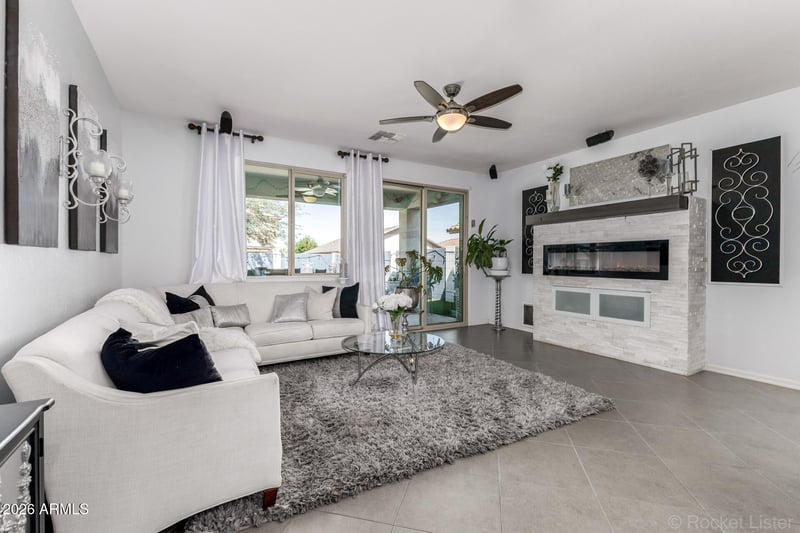 Listing details for 42118 Corvalis Ln, Maricopa, AZ 85138 : Beautiful two-story home with a private backyard oasis! The bright, open living area features a modern fireplace and stylish finishes, flowing seamlessly into a gourmet kitchen with granite countertops, stainless steel appliances, and a spacious island with bar seating. Step outside to enjoy your resort-style backyard complete with a sparkling pool, covered patio, and low-maintenance landscaping--perfect for entertaining or relaxing year-round. A perfect blend of comfort, style, and outdoor living--this home is a must-see!