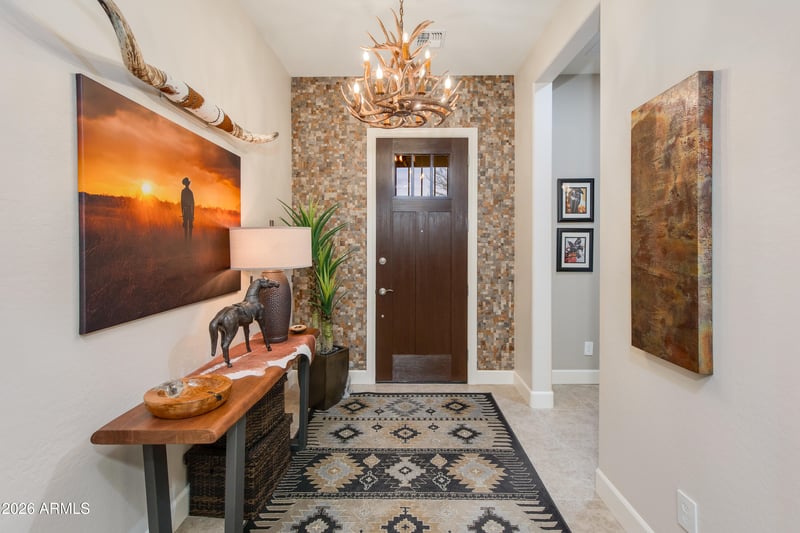 Listing details for 4260 Old Orchard Dr, Wickenburg, AZ 85390 : Hotel California model in Wickenburg Ranch—next-level chic, modern Southwest style w/thoughtful custom upgrades throughout! Located in quiet Lone Star, this 2BD/2BA open layout shines w/beautifully finished kitchen featuring large island & gas stove—perfect for entertaining. Statement barn doors, upgraded lighting & ceiling fans add personality in every room. Laundry delivers extra function w/custom cabinetry + sink for true working space. Water softener + R/O included. Outside, enjoy extensive landscaping, huge paver-extended patio & remote screen—made for sunset hangs & hosting. Spacious 3-car tandem garage w/sealed floors + added cabinetry/storage. Just moments to Short Course, dining, catch-&-release pond, & walking trails.