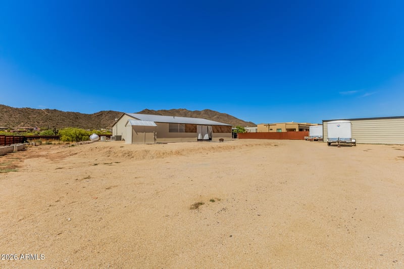 Listing details for 42605 6th Ave, New River, AZ 85087 : Pro Photos Coming Soon!! Built in 2023, this 3-bed/2.5-bath, home on 1.18 acres with a large detached garage delivers panoramic mountain views and modern desert living in New River, AZ. A whole-home standby generator backed by a 500-gallon propane system keeps the water heater, dryer, and range running -- true off-grid resilience. Designer cabinetry with 42'' uppers and tile floors throughout create a clean, contemporary feel. Detached garage is perfect for a workshop or extra parking. Security doors on every exterior entry let you enjoy Sonoran Desert air safely. The undeveloped east half of the lot offers room to build, expand, or add a guest house. Minutes from I-17 with easy access to Phoenix -- without sacrificing peace and privacy. Rare 2023-built acreage home.