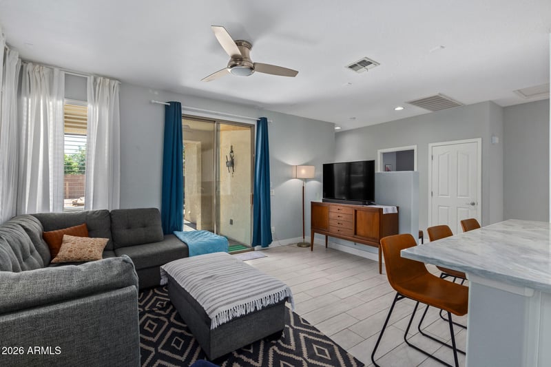 Listing details for 4261 Crown Ct, Gilbert, AZ 85298 : Nestled within the gated community of Seville, this beautifully updated single-level home offers a refined blend of luxury, comfort, and peace of mind. Featuring three bedrooms and two baths, the thoughtfully designed living spaces are ideal for both everyday living and entertaining. Positioned on a desirable corner lot, the home enjoys added privacy and a serene setting. Outdoors, a true resort-style retreat awaits with a sparkling pool and spa, complemented by refreshed pool decking completed in 2025 and lush turf grass—perfect for gatherings or quiet relaxation. Recent 2025 upgrades include a new HVAC system, water heater, and water softener, enhancing efficiency and long-term value. Meandering walking paths and a nearby golf course further enrich the lifestyle, making this Seville residence a rare opportunity to enjoy modern upgrades, an exceptional location, and tranquil surroundings.