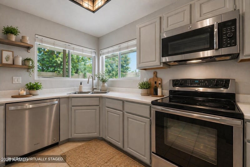 Listing details for 4284 Park Ave, Chandler, AZ 85226 : PAID OFF SOLAR + TESLA BATTERY! Enjoy energy efficiency and long-term savings in this 4 bedroom, 2 bathroom home with loft, offering approx 1,887 sq ft and a functional layout. The owners suite and two bedrooms are downstairs, with a loft and separate 4th bedroom upstairs--perfect for guests, office, or game room. Kitchen features stainless steel appliances, updated gray cabinets, and a breakfast bar open to the living area. Bathrooms have custom tile surrounds and updated fixtures, with modern paint throughout. Newer energy efficient windows and mature trees add comfort and privacy. Backyard includes artificial grass, play set, and extended patio. Community pool, greenbelts, tennis courts, Kyrene schools, with easy access to Loop 101 and I-10.