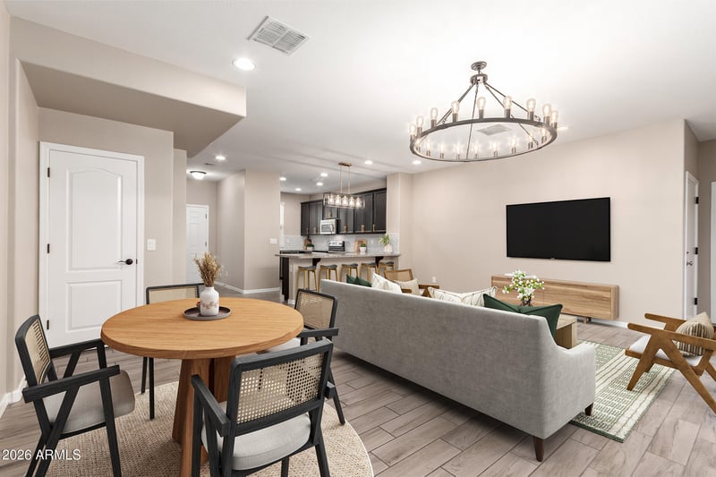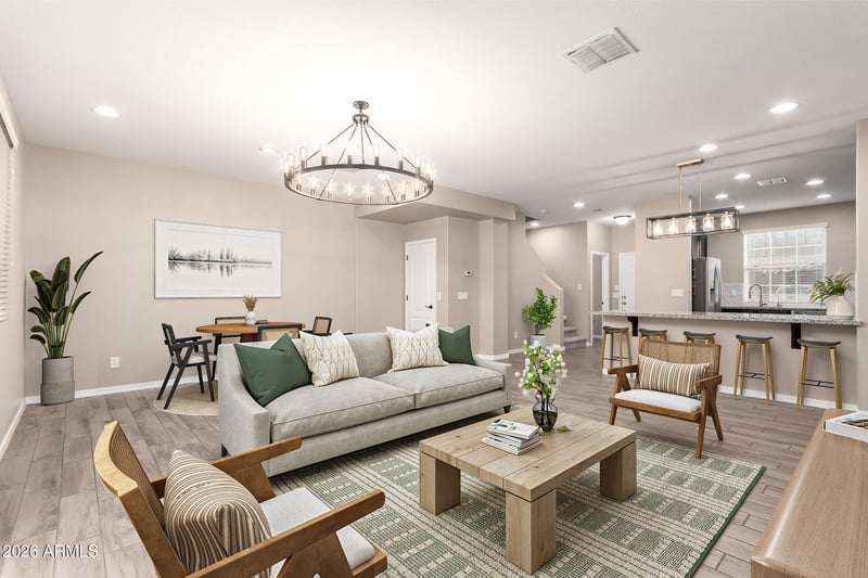Listing details for 4298 Toledo St, Gilbert, AZ 85295 : Don't miss the chance to own this beautifully redesigned home that blends style, comfort & low maintenance living! Step inside to an open floorplan w/ wood-look tile, plus new carpet, paint & fixtures. The large family room is ideal for cozy lounging & offers ample dining space. You'll love cooking in this bright kitchen that features updated cabinetry & hardware, tiled backsplash, SS appliances, granite counters, plus large breakfast bar which is perfect for casual meals! Upstairs you'll find 3 large secondary bedrooms w/ walk in closets, plus a remodeled primary suite featuring a stunning spa-like frameless glass shower, large updated vanity & his/her closets with beautiful built-ins! The pavered patio & turf yard is the perfect size for easy relaxation & entertaining, or take.. take advantage of the community pool on sunny days. Conveniently located in Cooley Station - a newly developed area with numerous great restaurants, shopping & close to freeways. The newer washer, dryer, and refrigerator, are included! This home truly has it all and is move-in ready!