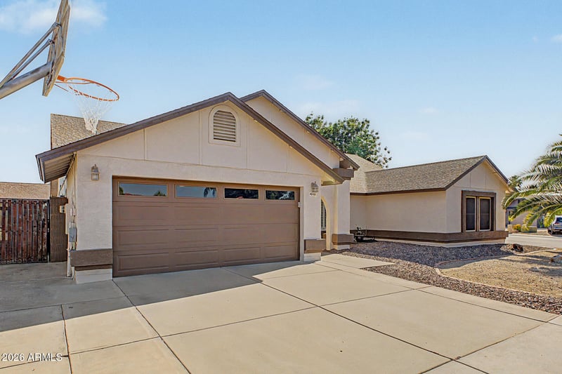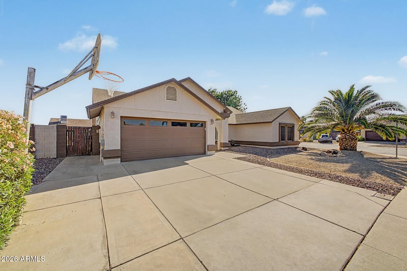 Listing details for 4303 Janice Way, Phoenix, AZ 85032 : Welcome to Royal Estates East -- a beautifully updated North Phoenix home on an oversized corner lot complete with a pool and no HOA. Located in the highly sought-after 85032 corridor, this home offers unbeatable convenience with quick access to the State Route 51 and Loop 101 Freeway, placing you just minutes from Scottsdale, Kierland, and Desert Ridge. Enjoy nearby shopping, dining, and entertainment at Desert Ridge Marketplace and the rapidly transforming Paradise Valley Mall area, along with top-rated schools in the Paradise Valley Unified District. From the moment you arrive, the pride of ownership is evident: mature landscaping, RV gate access, and extended parking offer space for all your toys. Inside, soaring vaulted ceilings with exposed wood beams make a dramatic statement, while plantation shutters, updated lighting, and tile flooring add warmth throughout. The great room centers around a striking floor-to-ceiling brick fireplace, flowing seamlessly into the dining area and chef-inspired kitchen complete with abundant cabinetry, solid surface quartz countertops, custom bronze stainless steel appliances, a prep island with breakfast bar, and a bay window breakfast nook overlooking the backyard. The split floor plan delivers privacy and flexibility, with generously sized secondary bedrooms and a primary retreat featuring new carpet, French doors to the backyard, and an updated ensuite with rain head shower, dual sinks and barn door accent. Out back, a covered patio, sparkling pool, hot tub provisions and ample yard space create the perfect setting for entertaining or relaxing. Additional highlights include RV gate + extended parking, dual-pane windows & plantation shutters, new refrigerator, water heater, and washer (within last 6 months), & the no HOA gives you the opportunity to turn this home into an income producing short term rental/Airbnb/VRBO, Assisted housing, etc.