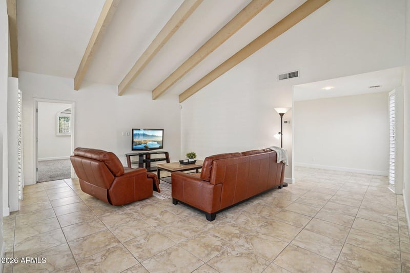 Listing details for 4317 Glenrosa Ave, Phoenix, AZ 85018 : Located in the highly desirable Decameron Village near Camelback & 44th, this Arcadia patio home offers low-maintenance living with a private front patio just steps from scenic walking paths and the community pool. The bright, single-level layout features 3 bedrooms and 2 bathrooms with vaulted ceilings and exposed beams, beautiful flooring, and a fireplace. The kitchen includes stainless steel appliances, granite countertops, recessed lighting, and a wine fridge—ideal for everyday living and entertaining. A quiet den overlooks the sunroom, and a flexible bonus room offers the option for a fourth bedroom or expanded primary closet. Recent upgrades include a new roof, new A/C unit, garage door, and exterior paint. Minutes from Old Town Scottsdale, the Biltmore, and Arcadia