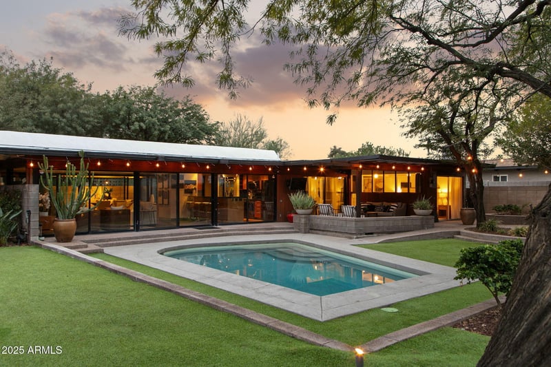 Listing details for 4324 Stanford Dr, Phoenix, AZ 85018 : CAMELBACK MOUNTAIN & PRAYING MONK VIEWS frame the backdrop to a masterpiece of Mid-Century Modern 1959 design seamlessly connecting breathtaking views with unparalleled architecture. A convergence of iconic architecture, breathtaking views, and one of Phoenix's most vibrant locations makes this home a rare masterpiece. Originally built in 1959 by architect Robert J. Peterson, and later updated by architect and one-time owner Ted Alexander, this home has been thoughtfully preserved to honor its era in the highly coveted neighborhood of Marion Estates. The iconic property blends architecture, natural elements, and views, leaving you in awe from the moment you arrive. Every room features floor to ceiling framed glass capturing the pristine surroundings & unobstructed Camelback views. The timeless design creates an atmosphere that is both visually striking and deeply livable. The open floor plan allows endless living enjoyment with 3 main bedrooms, large office/formal living space and a game room/media room. Remodeled throughout in recent years having modernized elements both inside and outside. The office space is sleek with modern retractable-style doors offering a highly versatile space designed to adapt to a variety of lifestyles. This dynamic area functions beautifully as a private office, gym, game or billiards room, or an indoor-outdoor pool lounge offering endless possibilities to tailor the space to your needs. Resort inspired outdoor living with multiple patios, curated sitting areas, misters, pool, raised gardens, outdoor speakers, mature desert landscaping & artificial grass accented with landscape lighting. Parking includes 2 distinct front covered carports offering up to 4 covered parking spaces plus the front circular motor court. An exceptional location places you at the center of Arcadia's most coveted lifestyle amenities. Just steps away from The Global Ambassador, Steak 44, AJ's Fine Foods, and The Henry delivering true urban living with world-class dining, markets, and social destinations right outside your door.