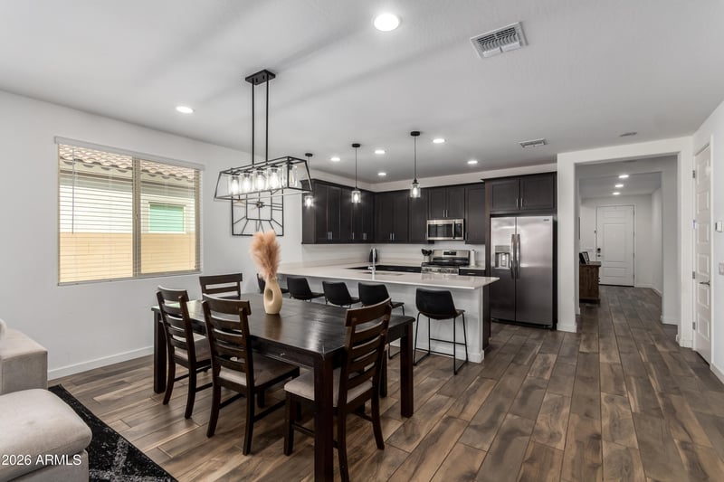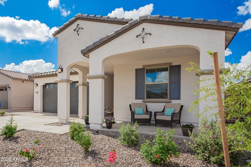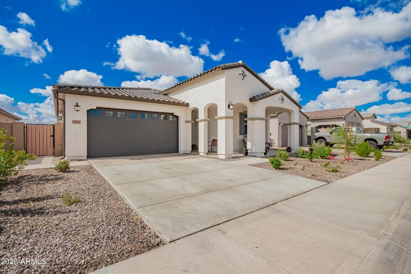 Listing details for 4327 Silo Dr, Gilbert, AZ 85296 : Built in 2024, this modern 4-bedroom, 3-bath home features a rare ''home-within-a-home'' layout, ideal for guests, extended family, or a private play/living space. Includes two full kitchens, washer/dryer, and two stainless steel refrigerators. Highly energy-efficient for lower annual utility costs. EV-ready with a 220V garage outlet. Smart features include Ring doorbells and a keyless entry. Low-maintenance backyard with putting green. Located in Warner Meadow with access to a large community pool, gas BBQs, multiple parks, and walking trails.