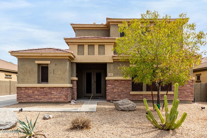 Listing details for 4335 153rd Ln, Goodyear, AZ 85395 : Stunning two-story home in one of Goodyear's most desirable neighborhoods! Featuring a long driveway, RV gate, dual front doors, and a 3-car garage with a converted flex space....perfect for guests, a home gym, or office with a separate exit.