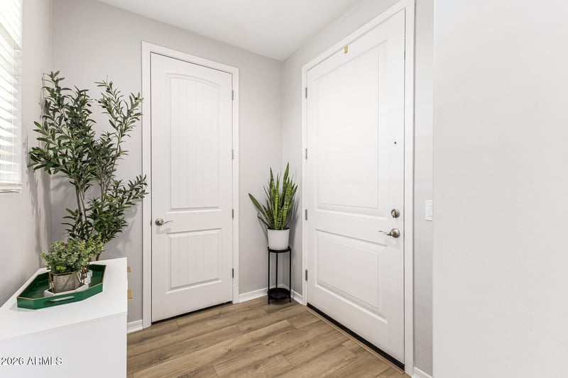 Listing details for 4340 Jesse St, Gilbert, AZ 85295 : Stunning 4-bedroom, 3-bath home in Cooley Station close to everything you need! You'll love the upgraded interior with high ceilings, a soothing palette, blinds, and stylish wood-look flooring. Cook delicious meals in the well-appointed kitchen, equipped with quartz counters, sleek shaker cabinetry with crown moulding, recessed lighting, stainless steel appliances, a practical pantry, and an island with a breakfast bar for casual dining. Upstairs, you'll find a cozy loft that provides a versatile living space. The tranquil primary bedroom features soft carpeting, an ensuite with double sinks, and a convenient walk-in closet. Spend peaceful afternoons in the backyard, which offers a covered patio and pristine artificial turf for outdoor relaxation. Don't miss this lovely home!