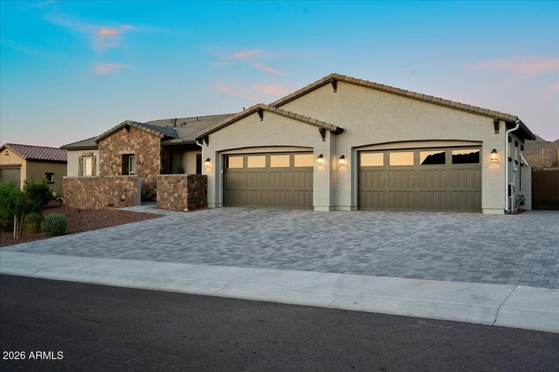 Listing details for 43423 National Ct, New River, AZ 85087 : Luxury desert living in Arroyo Norte. This 2024 single-level home is set on a premier lot backing to natural open space with sweeping mountain views and exceptional privacy. Elegant details include 10' ceilings, 8' doors, abundant natural light, 3 bed rooms plus an office, a chef's kitchen with granite surfaces, oversized island, stainless appliances, walk-in pantry, and a dedicated office. Outdoors, enjoy a curated backyard with a custom putting green, Corn Hole lane, multiple seating areas, and over 18,000 sq ft of grounds. 10' RV gate, extended parking, and 5-car garage setup complete the offering. Seller willing to convey furniture, TVs, and garage hanging racks on separate bill of sale. Outdoor amenities include professionally designed landscaping with a custom putting green, Corn Hole lane, multiple seating areas, and open mountain views. With more than 18,000 square feet of land, the property also offers an RV gate, extended parking area, and a 5-car garage configuration. Additional upgrades include an electric RV gate opener, spray foam insulation, post-tension foundation, tankless water heater, upgraded lighting, concrete tile roof, structured wiring, and an elevated Hacienda design package. Although recorded as New River, the home is ideally situated near Anthem for convenient access to shopping, dining, parks, and everyday services.