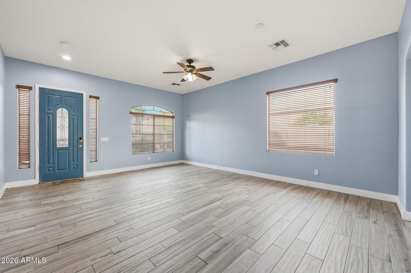 Listing details for 43423 Venture Rd, Maricopa, AZ 85138 : Conveniently located just minutes from Hwy 347, this home is ideal for buyers who commute to Phoenix regularly and want easy access in and out of town. It is also within walking distance of the lake, perfect for evening strolls or weekend relaxation. Featuring 3 bedrooms and 2 bathrooms, the home offers a spacious primary suite with room for a sitting area, a large walk-in closet, private toilet room, separate shower, and soaking tub. A 3 car garage and RV gate provide plenty of space for vehicles, toys, and storage. Designed for comfort, functionality, and everyday living in a prime Maricopa location.