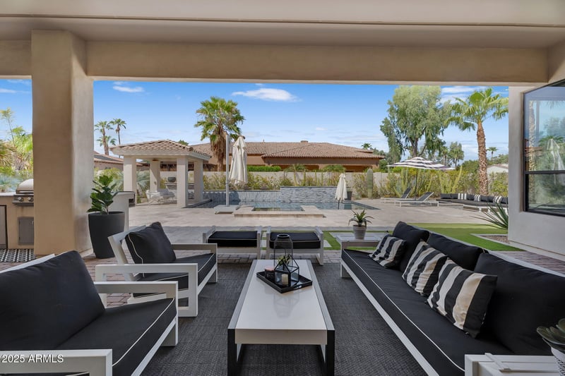 Listing details for 4348 Scorpio Pl, Chandler, AZ 85249 : If luxury had an address, this would be it. Ideally located minutes from multiple golf courses, country clubs, and set within an award-winning school district, this home delivers a true five-star lifestyle—right where you want to be.Designed to impress and built for real life, this stunning home blends sophistication, comfort, and unforgettable entertaining. Featuring 5 spacious bedrooms, a private office, and a versatile flex space with a professional golf simulator, every detail is intentional. Designer finishes elevate the interiors from floor to ceiling, while light-filled living spaces flow effortlessly for everyday living. Step outside to a resort-style backyard oasis perfect for hosting, relaxing, and enjoying the beautiful Arizona sunsets.