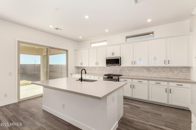 Listing details for 43513 Wollemi St, Queen Creek, AZ 85140 : Beautiful upgraded mid century modern exterior leads you into this spacious three bedroom plus flex room single level home! Enjoy all the upgrades this home has to offer such as soft water pre-plumb, upgraded electrical package, and our smart home package! Interior package includes tile flooring everywhere but the bedrooms, quartz counter tops, kitchen back splash and hardware through out!! Home backs to open space!
