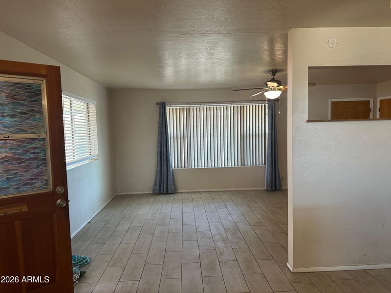 Listing details for 440 56th St, Mesa, AZ 85205 : 2 bedroom 1 bath block home in 55+ age restricted community. No HOA membership required (optional). Tile floors, living, dining and bonus room. There is a community pool if you join HOA. It has a non MLS lockbox.