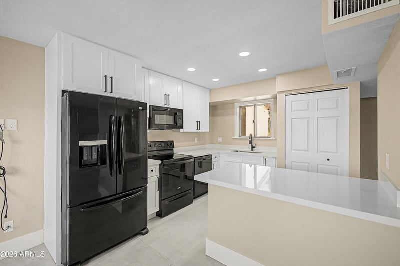 Listing details for 440 Hidalgo Ave, Phoenix, AZ 85040 : This charming two-story townhome in SPO Estates is the one! Offering 3 beds, 2 baths + powder room, and a detached 2-car garage. Discover extra storage at the front entry. The inviting interior features abundant natural light, a neutral palette, tile flooring downstairs, and plush carpet upstairs. The great room with fireplace is perfect for everyday living and entertaining! The fully remodeled kitchen boasts quartz counters, white shaker cabinetry, built-in appliances, pantry, and peninsula w/breakfast bar. Recent upgrades include NEW HVAC (2025), new bathroom vanities, and fresh interior & exterior paint (2026). All bedrooms are upstairs, including the primary with two closets and en-suite bath. Enjoy the private patio--perfect for relaxing or BBQs. Excellent location--move-in ready! Seller is open to seller financing!