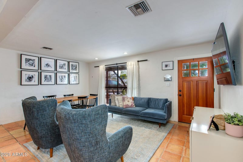 Listing details for 4405 23rd St, Phoenix, AZ 85016 : This charming 1950s South Biltmore home showcases character rarely found today. Inside, Saltillo tile floors lead into an open floor plan and a kitchen featuring stainless steel appliances and granite countertops. The home offers three bedrooms, two bathrooms, plus a detached laundry room and 129 sq ft detached workspace ideal for an office, studio, or play space IN ADDITION TO the home square footage. Double-insulated vinyl windows are found throughout. The covered backyard patio is well suited for relaxing or entertaining and includes generous storage. Ideally located with easy freeway access, or enjoy walking and biking to Town & Country, Biltmore Fashion Park, and nearby dining and shopping hot spots.