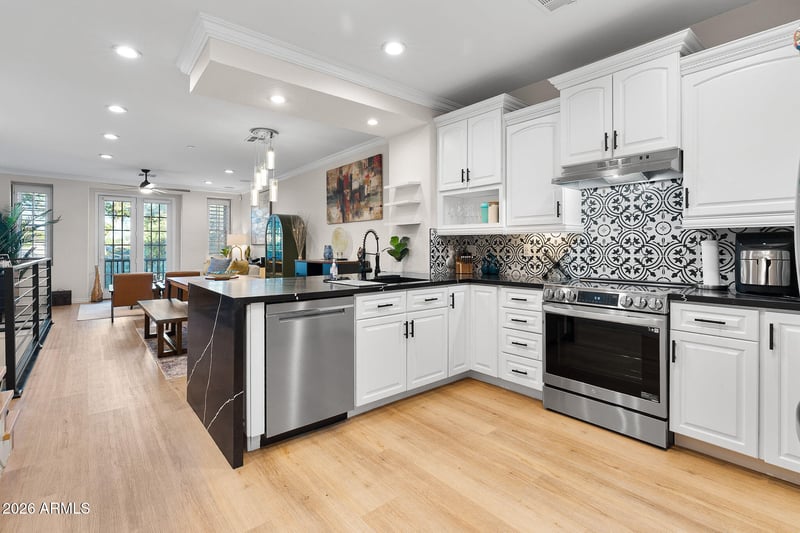 Listing details for 4419 24th Way, Phoenix, AZ 85016 : Beautifully updated luxury townhome in the highly desirable Biltmore Corridor! First floor features a spacious foyer right off the 2 car garage with full size laundry. The main living area is light & bright and open concept with luxury LVP flooring, an updated kitchen with stainless steel appliances, sleek quartz countertops completing the crisp white cabinetry and tile backsplash. Newly remodeled powder room & a convenient den finish this main living level. Upstairs you'll find a spacious primary retreat w/stunning modern bathroom as well & large walk-in closet. There's a built-in desk on this level in addition to the spacious secondary room with en-suite bath and another walk-in closet. The center of the community has a sparking pool & spa with cabanas. Hurry this beauty won't last long!