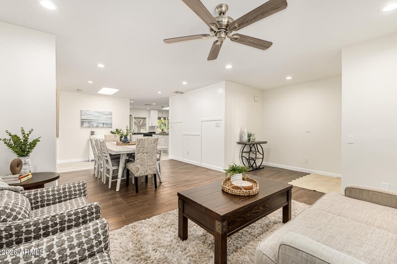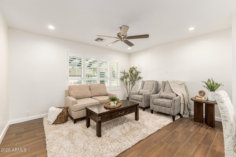 Listing details for 4421 Bluefield Ave, Glendale, AZ 85308 : Don't miss this beautiful home w/ golf course views in the sought-after community of Bellair! This single level, 3 bed/2 bath home has been renovated from top to bottom! You'll love the remodeled kitchen w/ white cabinets, granite counters, stainless appliances & views of the backyard & golf course! Fresh paint in 2026! All tile floors throughout, remodeled baths w/ newer vanities & tile showers, updated lighting & fans, shutters, paneled feature walls & indoor laundry. Don't miss the amazing backyard w/ covered patio, artificial turf & the best tree in the neighborhood! New roof in 2020, new a/c in 2024, plus new vinyl frame windows! Walking distance to one of the 4 community pools! Plus enjoy golf, tennis, pickleball, volleyball, basketball, walking paths & playgrounds within Bellair!