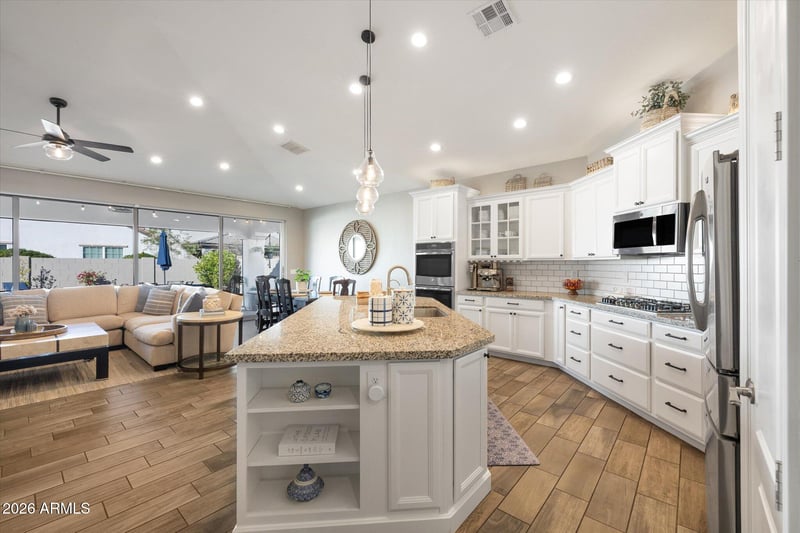 Listing details for 4422 Grand Canyon Dr, Chandler, AZ 85249 : Welcome to Finisterra - One of Chandler's most sought-after communities. This beautifully maintained 4 bedroom 3 bath home offers the perfect blend of comfort, style and functionality. Thoughtfully designed, it features an additional living room/den that provides flexible space for a home office, media room or play area. Step inside to discover upgrades throughout, from the refined finishes to modern touches that elevate every room. The layout is open and inviting ideal for both everyday living and entertaining. Outside the backyard feels like a private retreat. Mature landscaping surounds a large covered patio, perfect for outdoor dining, relaxing evenings or hosting gatherings year-round. This home checks every box. Space. Style. and Prime Chandler Location!!