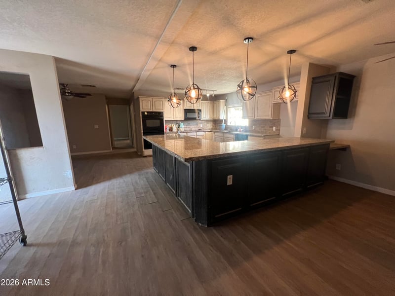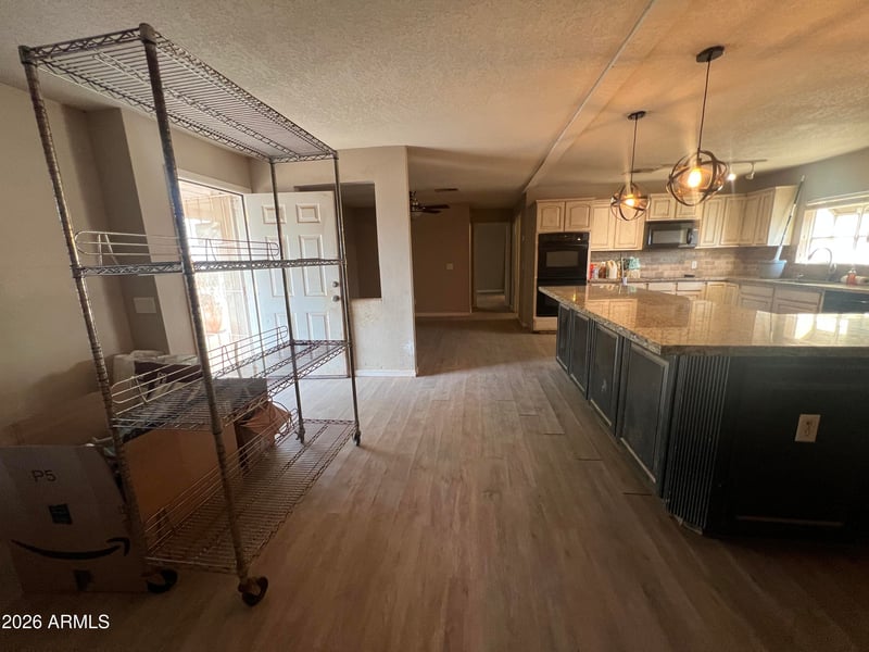 Listing details for 4427 Matate Ln, San Tan Valley, AZ 85140 : This 3-bedroom, 2-bath home features a desirable split floor plan. The kitchen offers abundant cabinet space and granite countertops. The living room flows into the dining area, creating a versatile space for both relaxing and entertaining. The primary suite includes double sinks, a separate shower and tub, and ample closet space. The laundry room also provides extra storage with additional cabinets. With plenty of room to enjoy the outdoors and create your ideal space, this property offers endless potential on over an acre in San Tan Valley!