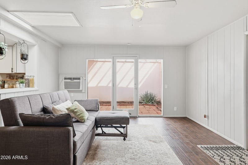 Listing details for 443 Hobson Pz, Mesa, AZ 85203 : Modernized 2 Bd, 2 Ba Townhouse w/Den. Updated throughout. New cabinets & Quartz in the kitchen. Granite in both bathrooms. Master has walkin shower. AC New in 2023. Private Front Patio. Enclosed SunRoom with open air, lattice-style roof. 2 Covered Parking Places. Under a mile to light rail stop. Tucked away in quiet, picturesque townhome community near downtown Mesa. Easy access to Sky Harbor Airport, 101, 202 & the 60.