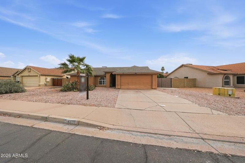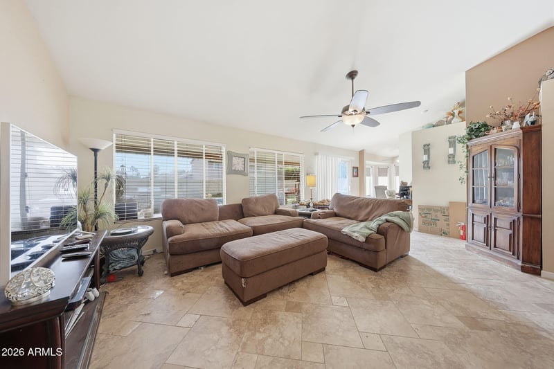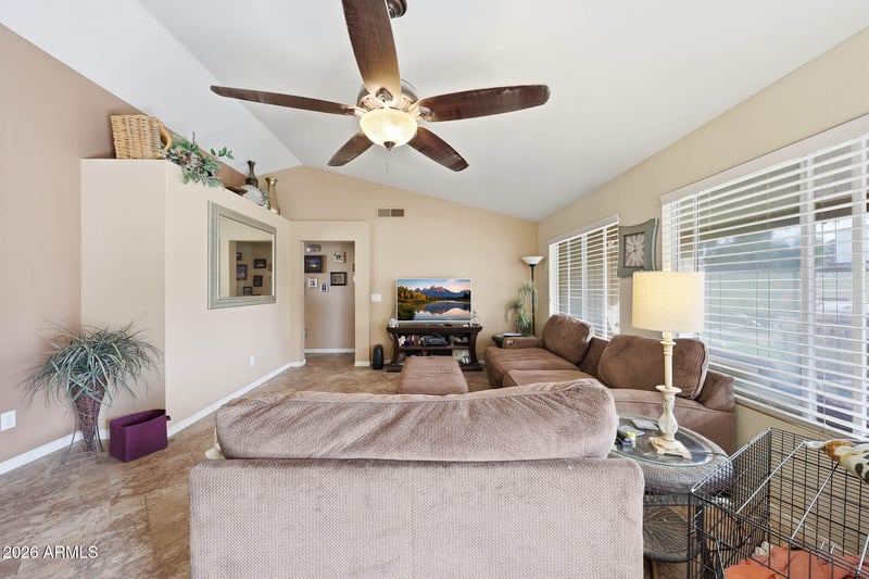 Listing details for 4431 Towne Ln, Gilbert, AZ 85234 : THIS IS THE OPPORTUNITY YOU HAVE BEEN LOOKING FOR! PRICED TO SELL/UNDER MARKET, this 3br, 2 ba home has amazing potential & is conveniently located near schools, parks, shopping & more! As you make your way through the front door, you will be greeted by the fabulous open family gathering area complete with vaulted ceilings, 18'' diamond-set tile flooring & a wall of windows that allow copious amounts of natural light to shine through. Your eat-in kitchen features upgraded cabinets, tiled countertops, undermount sink, fridge, plus a fantastic walk-in pantry. A fabulous bay-window at the eat-in area completes your kitchen tour. The vaulted ceilings continue into the owner's suite and boast a private, separate backyard exit, with its en-suite showcasing a dual-sink tiled vanity, walk-in closet, soaking tub /shower combo w/ travertine backsplash & privacy block window allowing natural light to filter through! Down the hall, you will find your secondary bedrooms with pretty arched windows, along with a 2nd bath. As you make your way outside to your private LARGE backyard, you will be pleasantly surprised by the amazing in-ground pool (2017), artificial turf, sitting areas, large covered patio & an RV gate! Before leaving, make sure to check out the inside laundry area (Washer/Dryer to stay), 2-car garage complete with built-in garage cabinets, soft water loop, hanging storage shelving & a service door that leads you out to the side of the home. New HVAC system installed in July 2025!