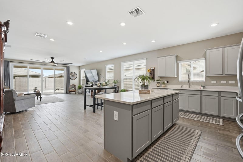 Listing details for 44446 Palo Olmo Rd, Maricopa, AZ 85138 : Located in Palo Brea, this Maricopa home offers a clean, updated interior along with practical upgrades. The location provides convenient access to the Copper Sky Recreation Complex, where you will find a fitness center, pool, group classes, parks, and much more. Outside, the property offers owned solar panels, an RV gate and an extended driveway with added pavers, giving you extra parking and flexibility that is hard to find in this price range. Inside, the kitchen features quartz countertops, stainless steel appliances, and a layout that works well for both everyday use and hosting. Bathrooms are finished with cultured marble countertops for durability and easy maintenance while gorgeous plank tile flooring fills the living areas of the home. A smart home system is already in place, along with an added front camera. A water softener and reverse osmosis system were also installed in 2023. Homes in this area are often chosen for their access to amenities and value. Additional proximity to freeways, dining, shopping, and great schools make this home an easy choice!