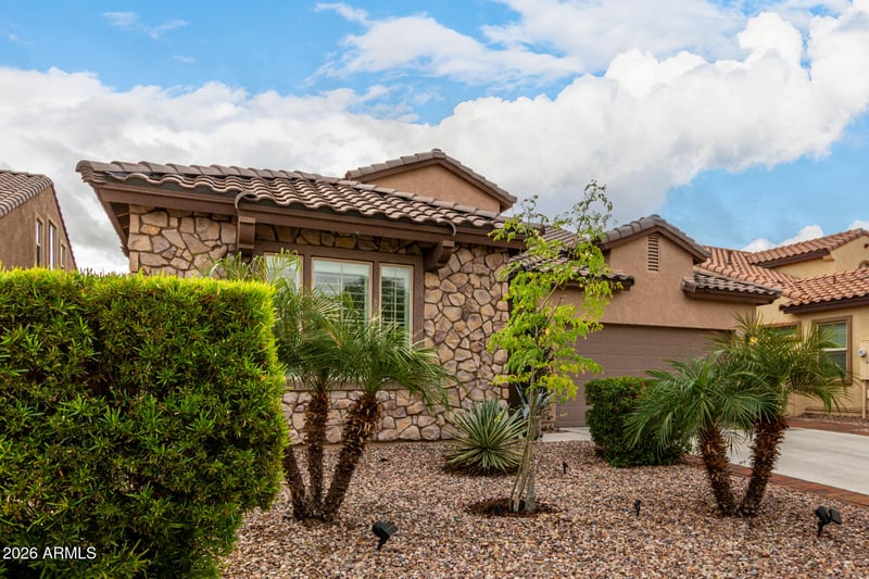 Listing details for 445 Red Mesa Trl, San Tan Valley, AZ 85143 : This well-appointed home pairs refined interior finishes with exceptional outdoor living. The backyard is a true focal point, featuring a beautifully designed pool and travertine deck that creates a private, resort-style setting for both entertaining and everyday enjoyment. Inside, the home is finished with custom shutters, granite countertops, and stainless steel appliances, offering a timeless and cohesive look throughout the main living spaces. The large kitchen opens seamlessly to the living & dining area for effortless flow. Adjacent to the kitchen is a spacious, well-designed laundry room featuring abundant cabinetry and expansive counter space, ideal for organization and utility. The layout of the home is fabulous, with 3 of the bedrooms on the main floor, including the primary suite. You'll also love the den/bonus space between the hall bedrooms, perfect for a home office, fitness, crafts, gameswhatever you can dream up! Upstairs features a huge loft, complemented by a 4th bedroom with its own walk-in closet and full bathroom. This private retreat setup is ideal for additional living space, a guest suite, or multi-generational living.