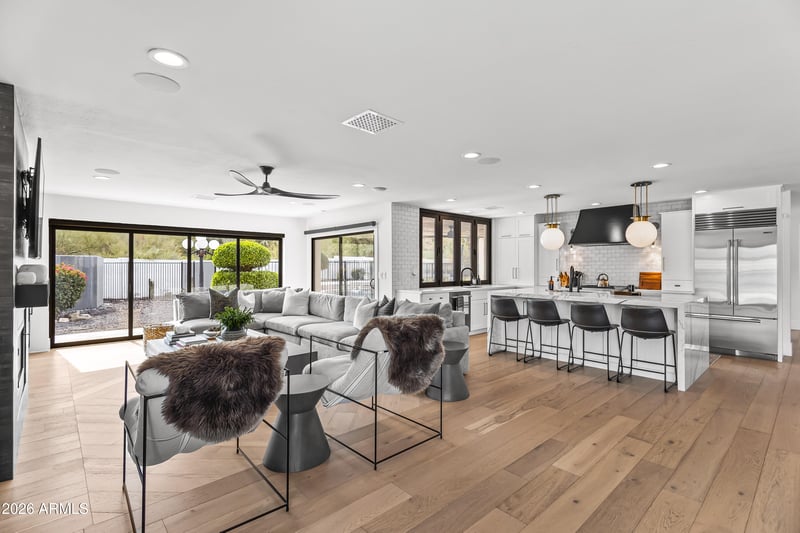 Listing details for 4455 Via Los Caballos --, Phoenix, AZ 85028 : If Bo Derek is a 10, this house is a 13. Set on a nearly one-acre cul-de-sac lot within a gated community, this professionally designed and extensively renovated home is a rare blend of refined interiors, resort-style outdoor living, and panoramic mountain views. Inside, every detail has been thoughtfully curated, from white oak hardwood flooring and a custom barrel-vaulted ceiling to all-new custom windows and doors that flood the home with natural light. The gourmet kitchen is an entertainer's dream, featuring a premium Wolf/Viking appliance package, striking marble island, designer lighting, and a dramatic bifold window with outdoor bar—perfect for seamless indoor/outdoor gatherings. The primary suite is a private retreat, complete with a fireplace, spa-like bath, and steel doors opening to a serene outdoor sitting area. Additional highlights include owned solar panels, offering both luxury and efficiency, commercial misting system, control4 home automation + glass expanse sliders. The expansive backyard is designed for unforgettable entertaining, showcasing a heated and cooled pool, heated spa, outdoor fireplace, and a brand-new ramada with full outdoor kitchen. With ample space remaining, the lot also offers incredible potential for a future guest house. Located within the highly coveted Three C's school district, just steps from hiking and surrounded by natural beauty, this home delivers on lifestyle, location, and design. A true 13 out of 10.