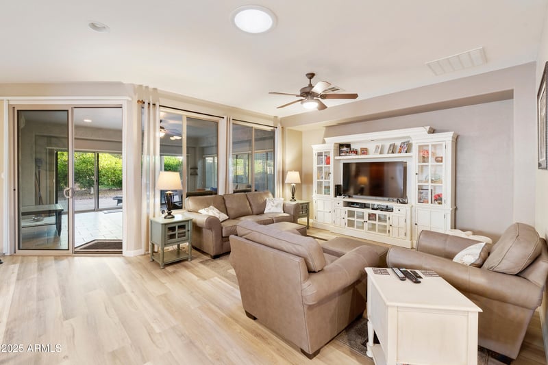 Listing details for 4484 Sourwood Dr, Gilbert, AZ 85298 : Are you an active 55+ individual looking for the perfect home in a guard-gated community that enjoys pickleball, tennis, swimming, art, bocce ball, golfing and so much more? If so, then this is the home for you! This freshly painted, single-story home has a wonderful open concept, high ceilings, natural light streaming through the many windows, tile floors. Imagine relaxing under your covered patio, surrounded by lush greenery at the end of your day. Just minutes to go shopping. A bonus feature is the home's location happens to be a short walk to the Clubhouse