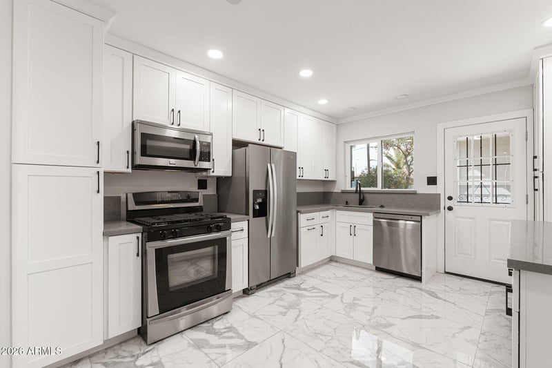 Listing details for 4540 12th Ave, Phoenix, AZ 85013 : Inviting single-story home recently refreshed with new interior paint and updated baseboards, offering a spacious backyard with a swimming pool. The kitchen features modern white shaker cabinets, stainless steel appliances, and a convenient breakfast bar. Bathrooms offer a clean, modern look with framed mirrors and custom shower niches. The expansive covered patio overlooks the sparkling pool, providing an ideal space for outdoor living, entertaining, or relaxing in the Arizona sun.