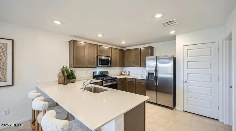 Listing details for 4545 Amethyst Ln, San Tan Valley, AZ 85143 : Seller will provide a credit towards a rate buydown and closing costs with preferred lender. Ask us how to save thousands over the life of your loan. Bella Vista Farms is a beautiful, growing, master-planned community in San Tan Valley, AZ. Residents enjoy an amenity-rich lifestyle with a swimming pool, picnic area, splash park, soccer field, playground, multiple sport courts, and a spacious greenbelt. This home comes fully equipped with all brand-new stainless steel kitchen appliances and features 18x18 tile flooring, elegant quartz countertops, and stylish maple linen cabinetry, thoughtfully designed for comfort and functionality. Renderings/photos are of a model home. A copy of the public report is available on the ADRE's website.