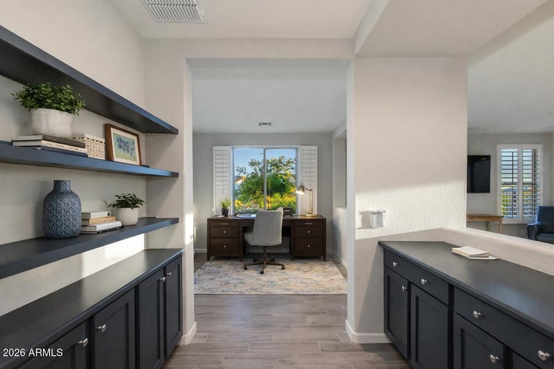 Listing details for 4550 Fletcher Ct, Wickenburg, AZ 85390 : AMAZING PANORAMIC SUNSET & MOUNTAIN VIEWS highlight this Shea-built Cypress plan, ideally located in the Caballero neighborhood within Wickenburg Ranch. Thoughtfully designed single-level living offers 2 bed, 2 bath & an open great room with expansive multi-slide glass doors for seamless indoor-outdoor flow. Custom-designed backyard is an entertainer's dream featuring motorized patio shade, two custom elevated sitting areas & a striking custom fire pit, all positioned to capture dramatic desert sunsets. Kitchen showcases custom-painted cabinetry, granite countertops & upgraded fixtures throughout. Enhanced lighting, designer finishes & private outdoor living combine to create a refined desert retreat in one of the community's most desirable locations.
