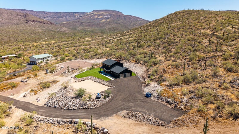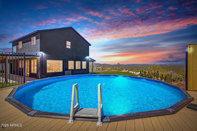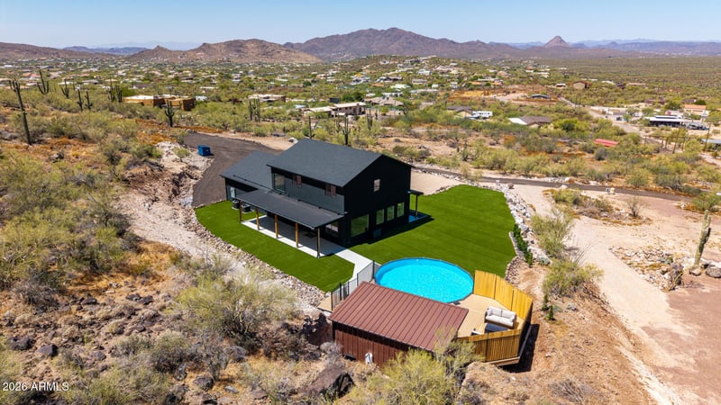 Listing details for 45513 23rd Pl, New River, AZ 85087 : Perhaps the best views in all of New River! This unique property offers panoramic mtn views & breathtaking sunsets, all while still providing plenty of usable yard space for family & entertaining, a rare combination! It borders ST Land and just a stone's throw from National Forest. Built only two years ago, the home feels nearly brand new. The beautiful kitchen features ceiling-height cabinetry, premium Café appliances, and an oversized island, perfect for gathering. Plenty of natural light thru the expansive windows which frame the spectacular Sonoran Desert. U/S has a loft area for add'l play space (or convert into a 4th bdrm). The resort-style bkyd features a sparkling pool, a sauna bldg with steam room, shower, and changing room, plus large turf areas. Oversized 2-car garage.