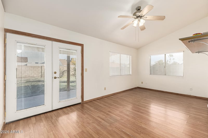 Listing details for 4552 Kimberly Way, Glendale, AZ 85308 : Prepare to be amazed by this 3-bedroom home adorned with solar panels for energy saving! Come inside to discover a perfectly flowing living & dining room graced with abundant natural light. Features like wood-look flooring, neutral palette, ceiling fans, and vaulted ceilings add to the overall appeal. The family room offers French doors to the back patio, ensuring an effortless indoor-outdoor living experience. The kitchen displays white cabinets, built-in appliances, a pantry, and a breakfast bar. In the primary bedroom, you will have a private bathroom with a glass step-in shower. Unwind under the covered patio while enjoying your favorite beverage and the peaceful surroundings. Hurry! Just pack your bags and move right in!
