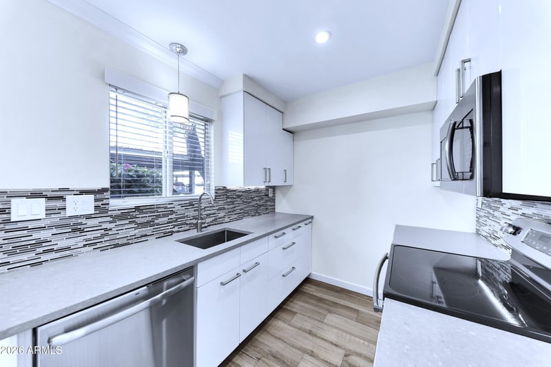Listing details for 4600 68th St #342, Scottsdale, AZ 85251 : Welcome Home! Fantastic 2/2 modern setup. Court-side unit to pool/fun&games areas. Light and Bright, Fresh Paint and newer energy efficient windows. Frosted Glass Doors for great natural light throughout. Then there' the incredibly stunning kitchen: Quartz Counters, Beautiful Cabinets, Stainless Steel Appliances, Glass Tile Backsplash. Bottom floor with Wood Plank-like TILE, upstairs Newer Carpet. Newer HCAC with brand new fans throughout. Exit the Living Room to your large patio with new indoor/outdoor carpeting. All this just steps away from Scottsdale Fashion Square with the Valley's Best Shopping and Restaurants. Must See!!! Furniture is virtually staged.
