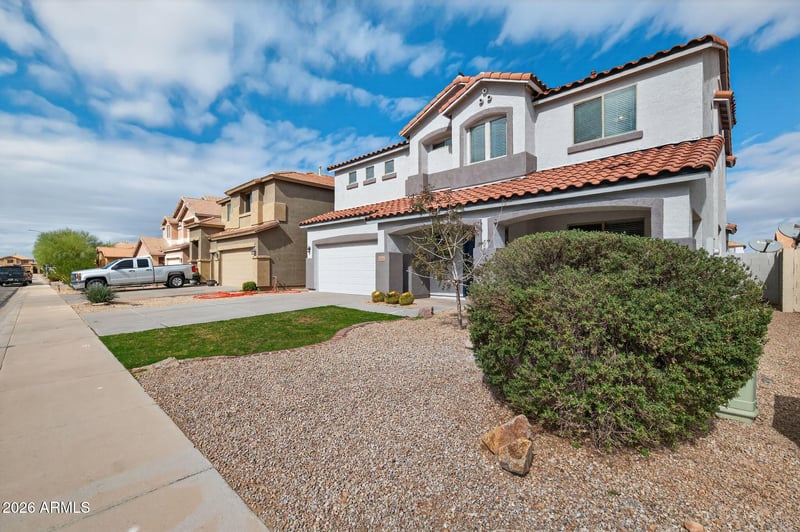 Listing details for 46008 Tulip Ln, Maricopa, AZ 85139 : Welcome to this beautifully upgraded 4-bedroom, 3-bath home with a spacious loft/office in the highly desirable Maricopa Meadows community. From the moment you step through the front door, you're greeted by a large, inviting living room that flows seamlessly into the eat-in kitchen and open great room--creating the perfect layout for both everyday living and entertaining. Upstairs, you'll find four generously sized bedrooms along with a versatile loft space ideal for a home office, media room, or play area. The loft can also be enclosed to create a fifth bedroom if desired. The expansive primary suite offers a private retreat, complete with dual sinks, a separate soaking tub and shower, and an oversized walk-in closet. This home has been thoughtfully updated with major improvements, including new roof underlayment (2025), new stainless steel appliances (2025), new quartz countertops (2025), fresh interior and exterior paint (2025), new carpet, and a new A/C unit installed in 2023, providing peace of mind and modern style. The 3-car garage features a tandem bay that can serve as additional parking, extra storage, or a workshop space. Located in the heart of Maricopa Meadows near parks, schools, and community amenities, this move-in-ready home offers space, flexibility, and value.
