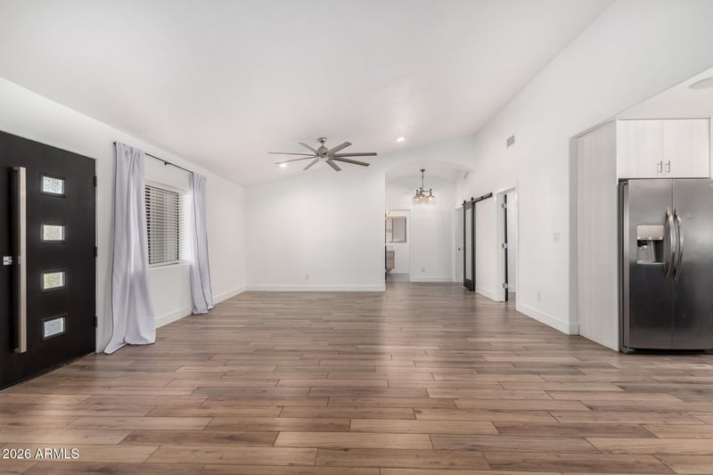 Listing details for 4607 Edgemont Ave, Phoenix, AZ 85008 : Located in the highly desirable Arcadia Lite District, this single-level ranch-style home sits on an approx. 1/4-acre flood-irrigated lot with no HOA and easy access to Sky Harbor Airport, top schools, dining, and major freeways.This 4-bedroom, 3-bath home offers a bright, open floor plan with vaulted ceilings, wood-look tile flooring, neutral finishes, and updated lighting throughout. The chef's kitchen features quartz countertops, stainless steel appliances, gas range, wine fridge, custom tile backsplash, 42'' European-style cabinetry, recessed lighting, a pantry, and a large center island with breakfast bar seating.